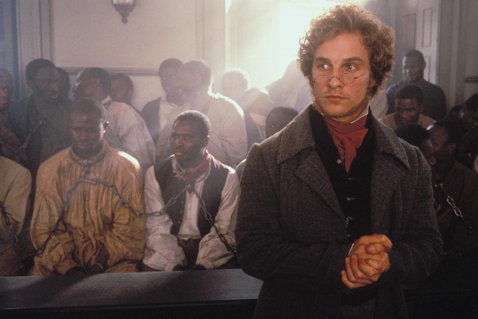 Alternative Plot: In 1839, the slave ship Amistad set sail from Cuba to America. During the long trip, Cinque (Djimon Hounsou) leads the slaves in an unprecedented uprising. They are then held prisoner in Connecticut, and their release becomes the subject of heated debate. Freed slave Theodore Joadson (Morgan Freeman) wants Cinque and the others exonerated and recruits property lawyer Roger Baldwin (Matthew McConaughey) to help his case. Eventually, John Quincy Adams (Anthony Hopkins) also becomes an ally.