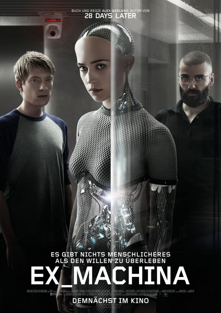 Plot: The reclusive CEO of a hi-tech company (Oscar Isaac) recruits a brilliant young computer programmer (Domhnall Gleeson) to evaluate his latest invention -- a highly advanced android named Ava (Alicia Vikander), which is supplied with the most advanced Artificial Intelligence ever conceived. Meanwhile, despite their intelligence and formidable reputations, the two men fail to realize just how easily they can be manipulated by a machine that's as beautiful as it is brilliant..