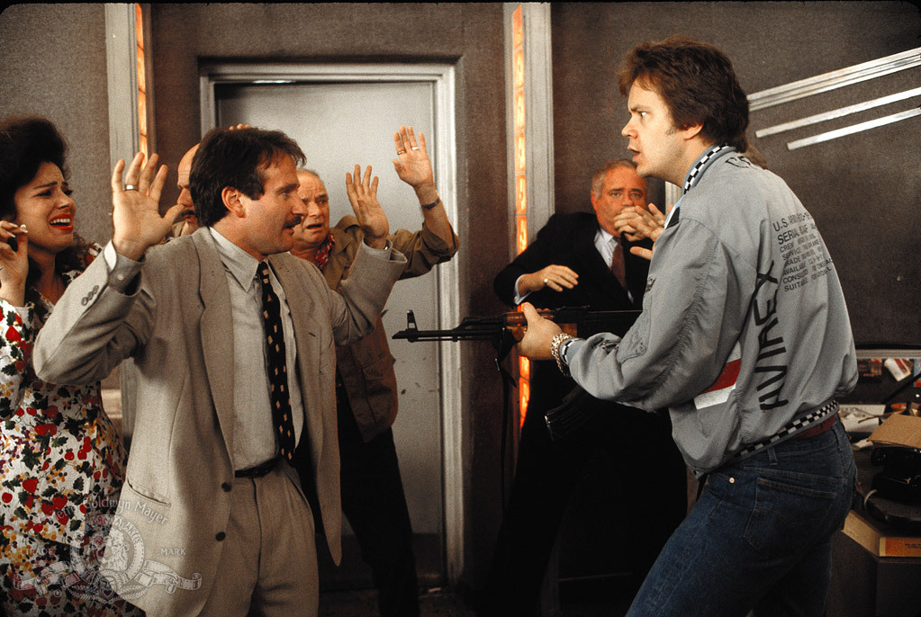Alternative Plot: Car dealer Joey O'Brien (Robin Williams) is spread as thin financially as he is in his love life. He's dating more women than he can remember, and the local toughs he's borrowed money from want it back. In a last-ditch effort to get out of debt, Joey struggles to sell a dozen cars in two days -- a task that becomes difficult when the husband (Tim Robbins) of Joey's secretary (Annabella Sciorra) barges into the dealership with a semi-automatic weapon and takes everyone hostage.