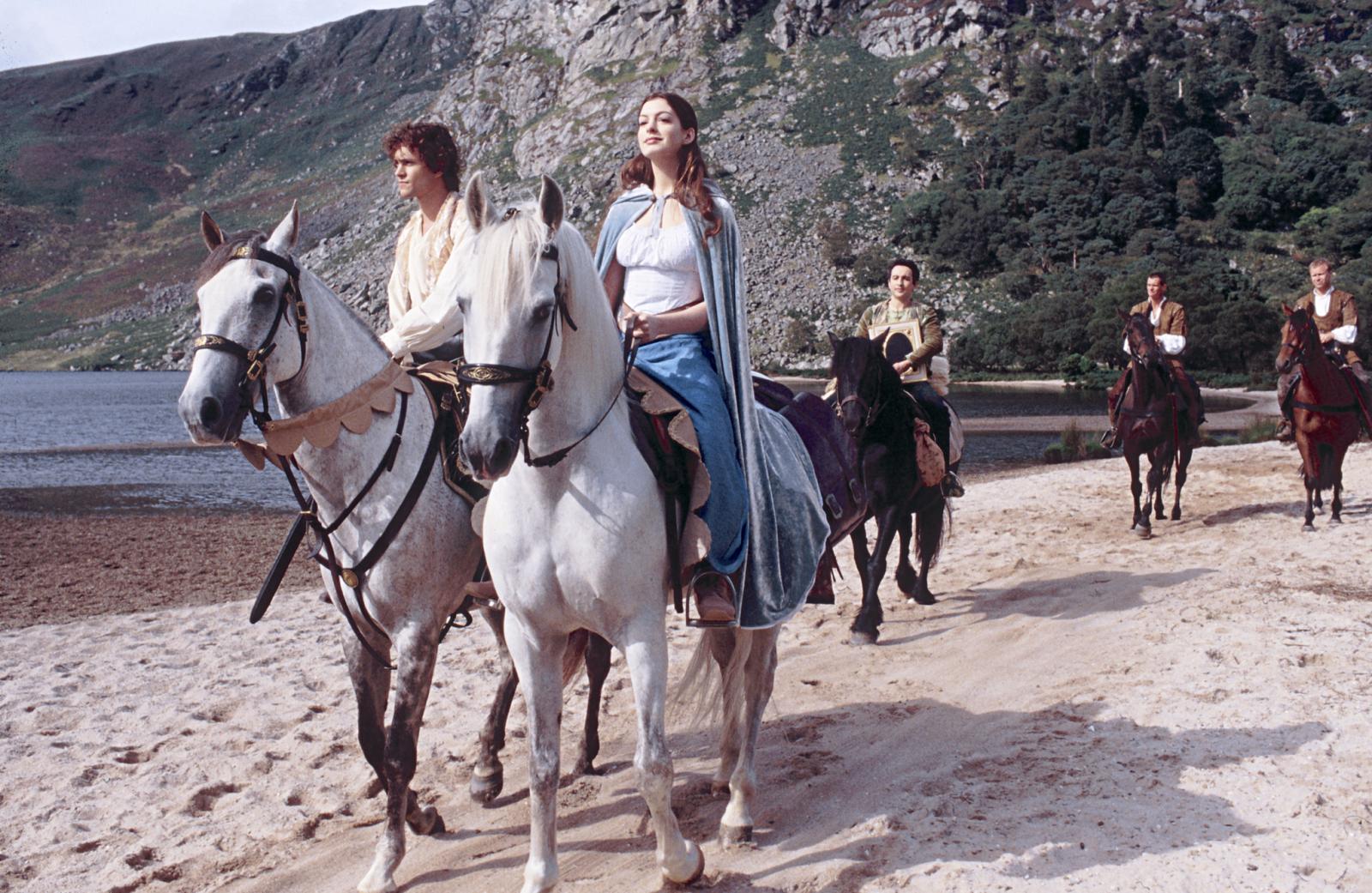Alternative Plot: As a baby, Ella (Anne Hathaway) receives a visit from Lucinda (Vivica A. Fox), her fairy godmother, and is bestowed with a magical talent that requires her to obey anything that she is told to do. This proves to be more of a curse than a blessing, particularly once her mother dies and she is forced to live with the cruel Dame Olga (Joanna Lumley). Eventually, Ella embarks on a journey to find Lucinda and break the spell, accompanied by the handsome Prince Charmont (Hugh Dancy).