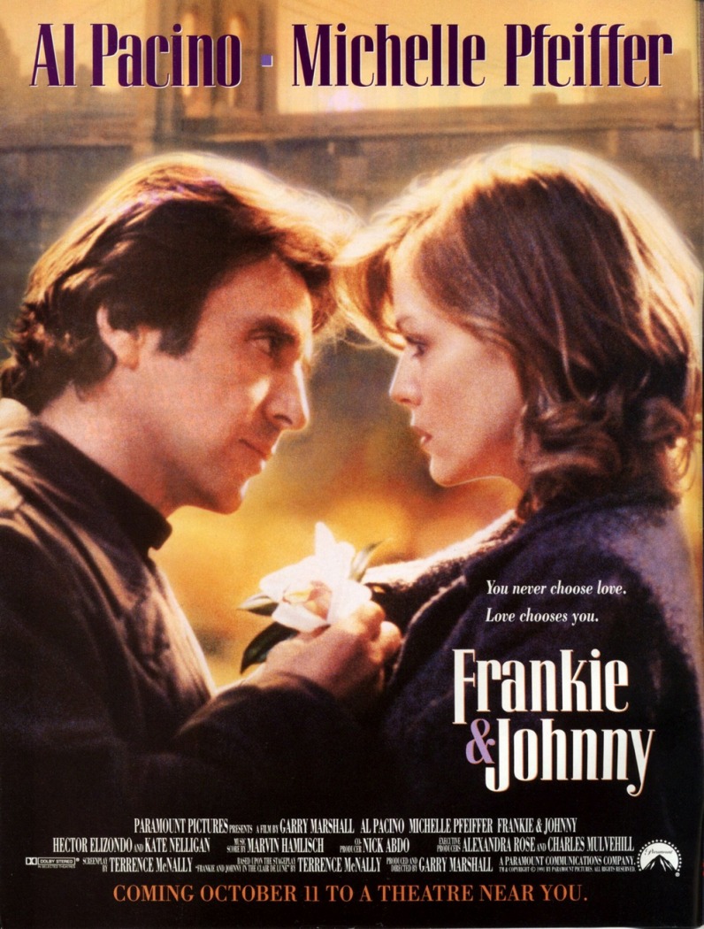 Alternative Plot: When Johnny (Al Pacino) is released from prison following a forgery charge, he quickly lands a job as a short-order cook at a New York diner. Following a brief fling with waitress Cora (Kate Nelligan), Frankie develops an attraction for Cora's friend and fellow waitress Frankie (Michelle Pfeiffer). While Frankie resists Johnny's charms initially, she eventually relents when her best friend, Tim (Nathan Lane), persuades her to give Johnny a chance.