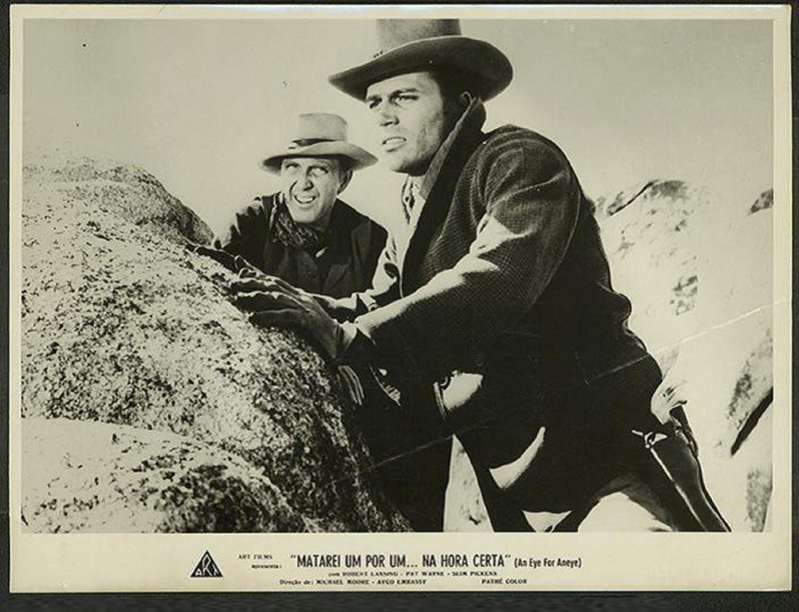 Alternative Plot: Ex-bounty hunter Talion (Robert Lansing) comes home one day to find his house ablaze and his entire family slaughtered. He soon learns that the culprits are a gang led by nasty Ike Slant (Slim Pickens). While tracking the outlaws, Talion meets fellow bounty hunter Benny (Pat Wayne), who's also after Ike. Initially mistrustful of each another, Benny and Talion are forced to work together when, during a shootout with the criminals, the latter is blinded and the former injures his shooting hand.