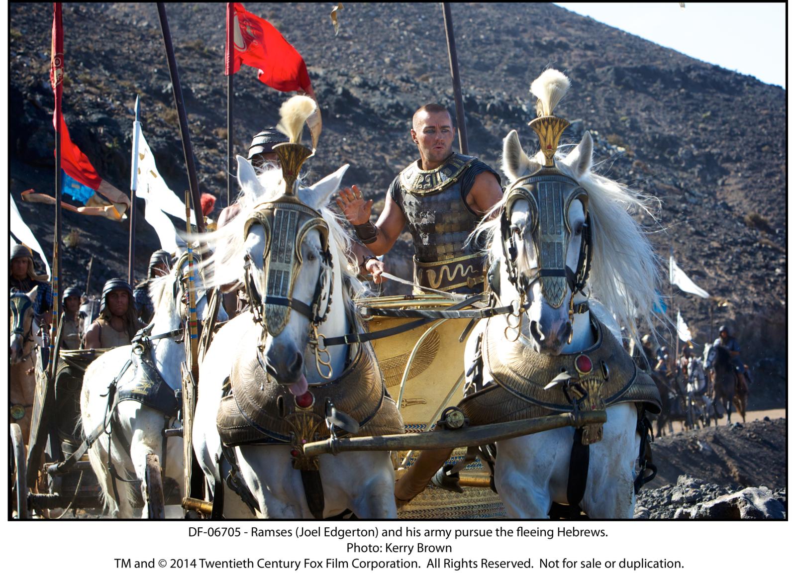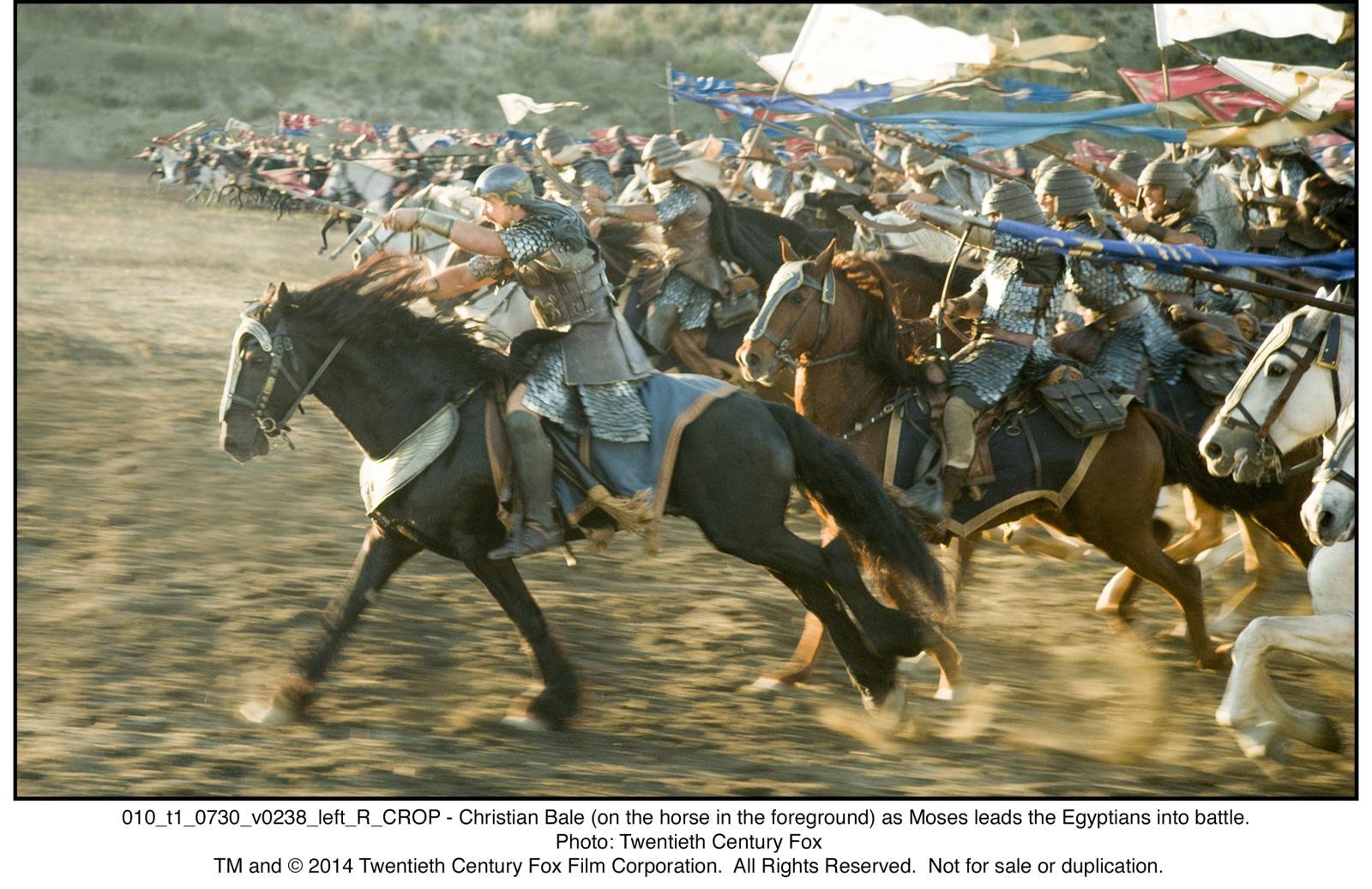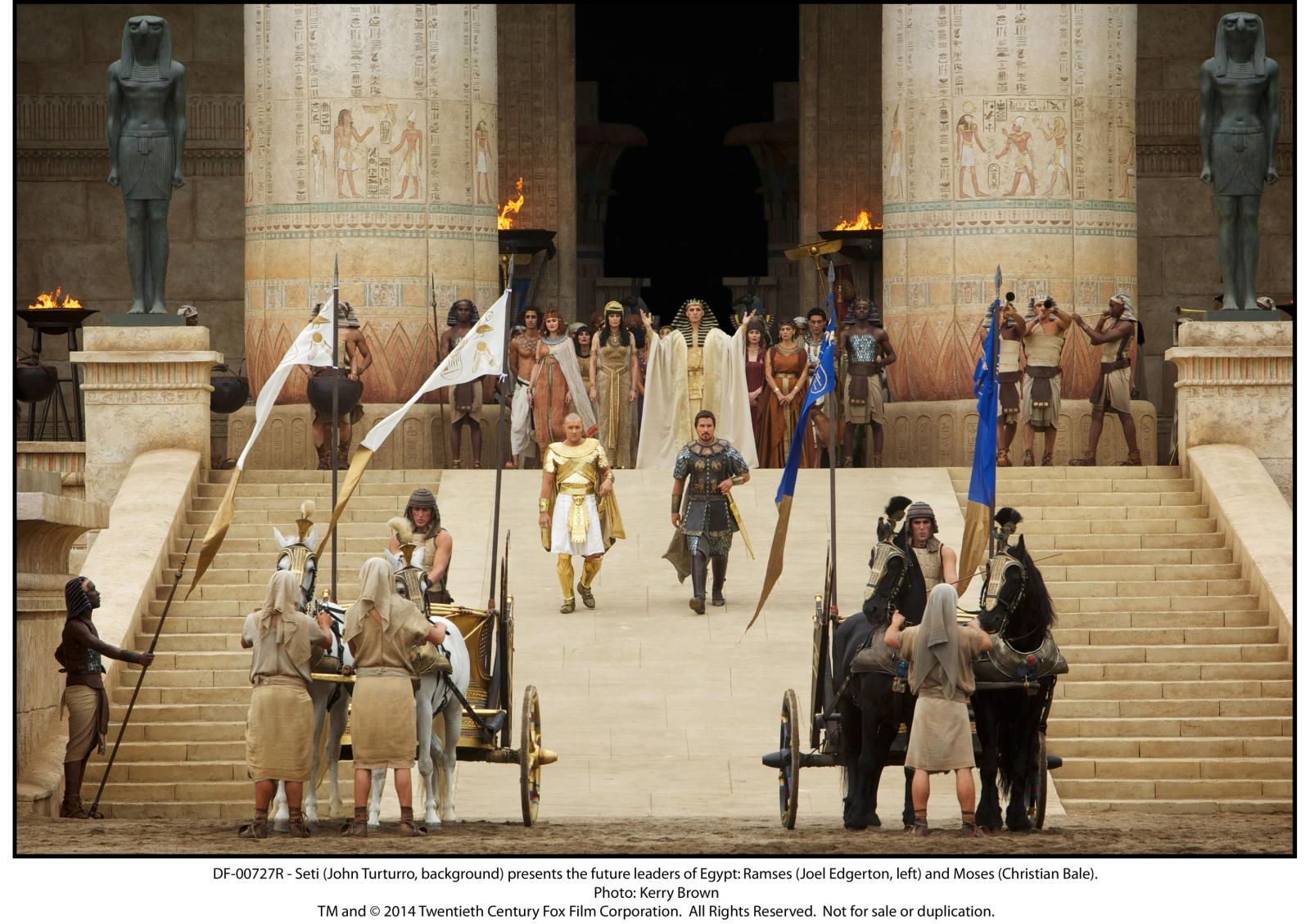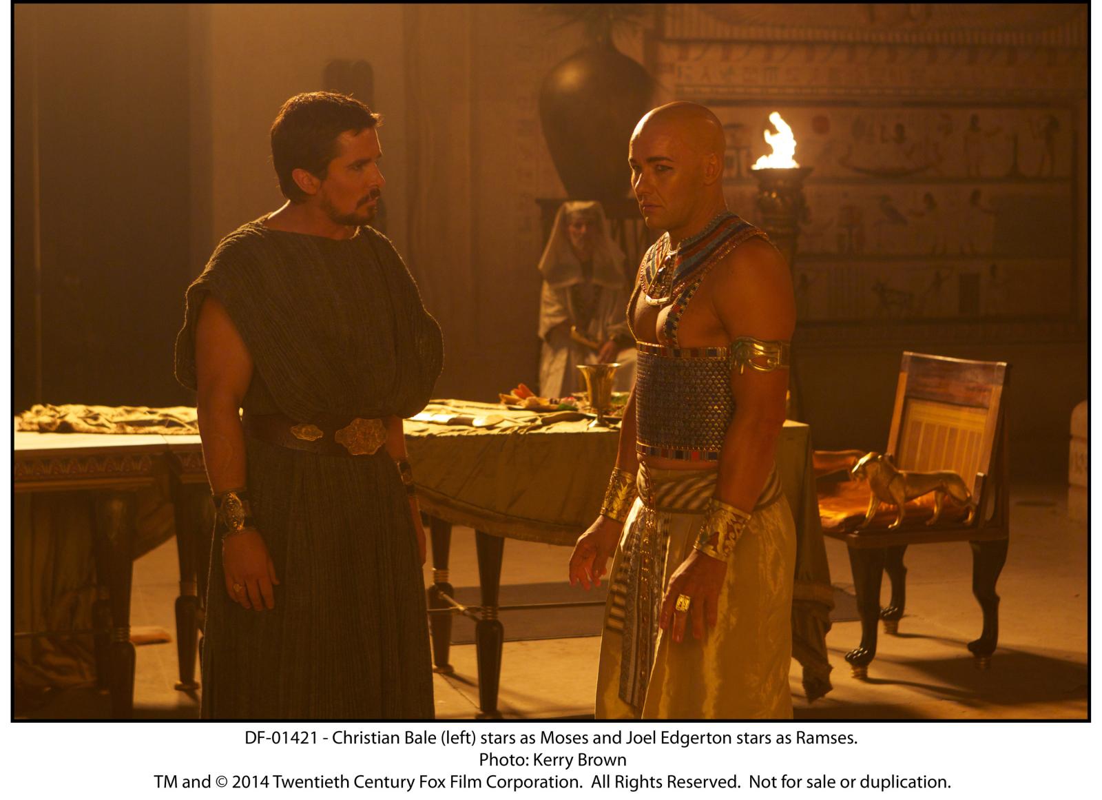 Plot: Biblical epic Exodus: Gods and Kings stars Christian Bale as Moses who, as the film opens, fights alongside his brother Ramses (a shaved-headed Joel Edgerton), to help defend Egypt, which is ruled by their father, Seti (John Turturro). During battle, Moses saves Ramses life, causing Ramses to fear that his brother will one day be King because it fits with a prophecy handed down by one of Seti's trusted spiritualists. Soon after Seti's death, Moses, who is actually Jewish and not Egyptian, is banished. However, he becomes the leader of the Jewish people and leads a rebellion, with the help of a wrathful God, against that Egyptians..