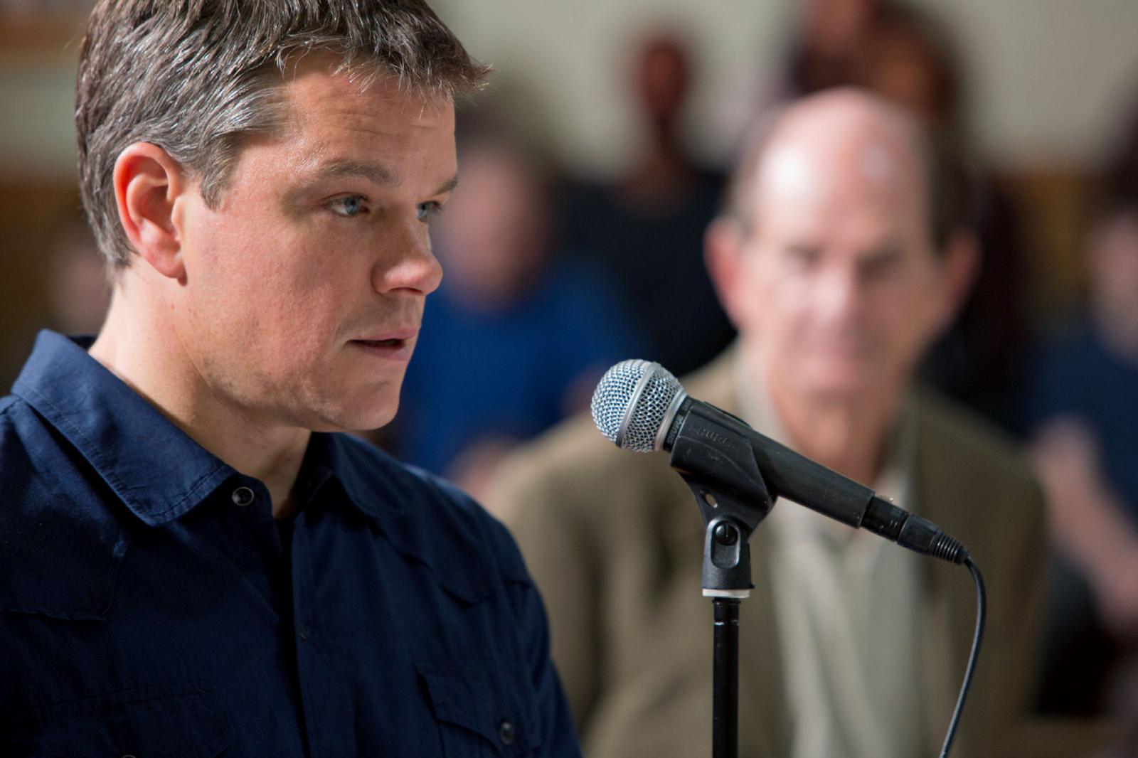 Alternative Plot: Corporate sales partners Steve Butler (Matt Damon) and Sue Thomason (Frances McDormand) arrive in a small town to secure drilling rights for a natural-gas company. They believe that the economic decline has done their work for them and that the townspeople will happily accept whatever offer they make. However, they don't consider the objections of a respected schoolteacher (Hal Holbrook) and the leader (John Krasinski) of a grassroots campaign against the company's objective.