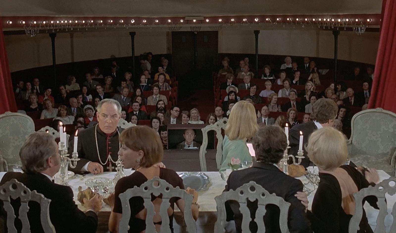 Υπόθεση: Μια σουρεαλιστική, σχεδόν χωρίς πλοκή σειρά ονείρων που επικεντρώνεται σε έξι άτομα μεσαίας τάξης και τις συνεχείς διακοπτόμενες προσπάθειές τους για να γευματίσουν μαζί