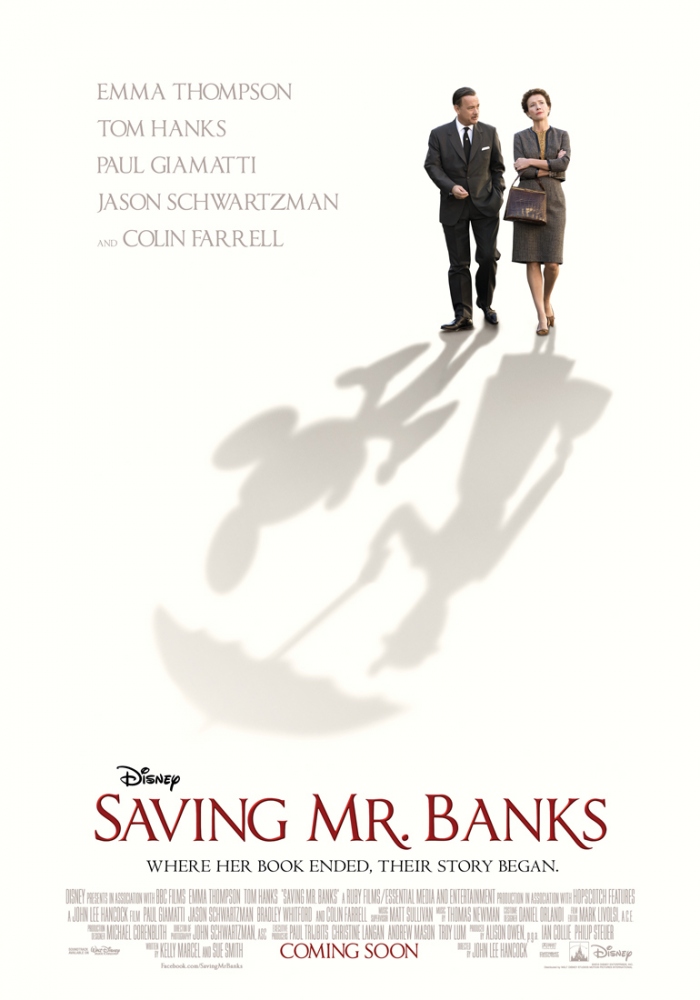 Plot: 1961. For twenty years through their respective representatives, Walter Elias Disney (Tom Hanks) has tried so far unsuccessfully to purchase the rights from British author P.L. Travers (Dame Emma Thompson) for her series of Mary Poppins books to make into a movie. Travers has felt protective of her material, especially against Disney, as she sees the Disney brand as not meshing with her stories. She fears that Disney will turn the stories into a saccharine animated mess as she doesn't want her Mary Poppins to become synonymous with Mickey Mouse. But Travers, who has not written voluntarily in years and is running out of money, agrees now at least to meet with Disney's representatives in Los Angeles, California to go through the script, as she has managed to gain script approval before she signs over the rights, something Disney has never agreed to with anyone else. Those representatives are most specifically the project's Screenwriter Don DaGradi (Bradley Whitford) and Songwriter brothers Richard M. Sherman (Jason Schwartzman) and Robert B. Sherman (B.J. Novak), the latter two who irk Travers, if only because she also does not see a Mary Poppins movie as being a musical. Disney and Travers find that they are the antithesis of each other in almost every respect, his casualness in dealing with people on a first name basis against her wishes to be more formal in calling and being called by one's surname preceded by the appropriate honorific only the most obvious example. Although not in the script meetings, Disney gets wind either directly or indirectly of the difficulties in the script negotiations, where he sees most of her demands as being overly unreasonable to kibosh the project purposefully. For the negotiations to be successful, Disney and his representatives will have to learn that Travers' protectiveness is due to the relationships she had with who were the inspirations for the characters of Mary Poppins, and most specifically, Mr. George W. Banks.