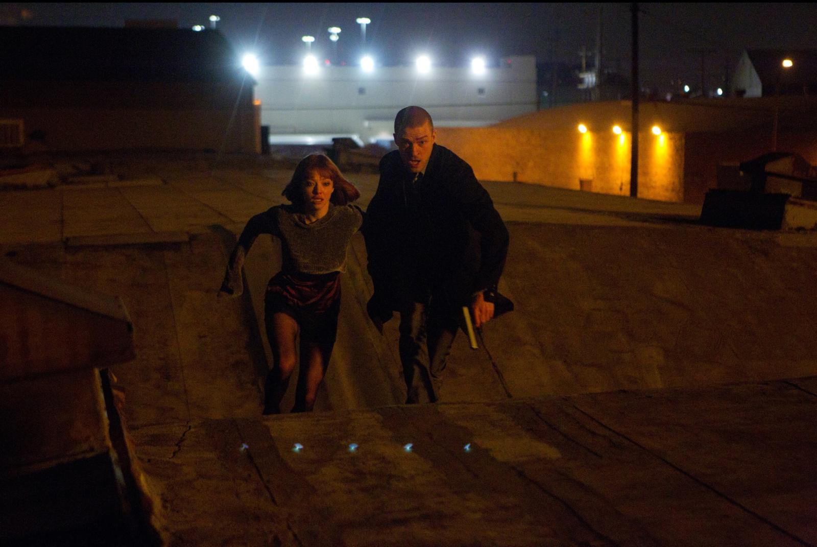 Plot: In a future society, people are genetically modified to stop aging at twenty five and after that a clock is activated with one more year for each citizen. Time is a currency and the wealthy that live in the New Greenwich are immortals while the poor live in ghettos in time zones are exploited and forced to live with a few hours or days, and need to work, borrow, beg or steal to stay alive. Thieves steal time and the timekeepers control the society. When the worker Will Salas saves the rich Henry Hamilton from a dangerous gang of thieves, Henry tells that he is 105 years old and is tired of living, since there is no need for the deaths in the unfair society. When Will sleeps, Henry gives more than one hundred years to him and commits suicide. Will runs to meet his mother Rachel Salas to credit time to her but she dies before the transference. Will heads to New Greenwich but the timekeeper Raymond Leon believes that he killed Henry to steal his time. Will flirts with Sylvia Weis, who is the spoiled daughter of the millionaire Philippe Weis, in a party and when Raymond arrests him, Will Salas kidnaps Sylvia and brings her to the ghetto where he lives. Sylvia feels how despicable her father is and together with Will, they steal a large quantity of time to fight against the system.