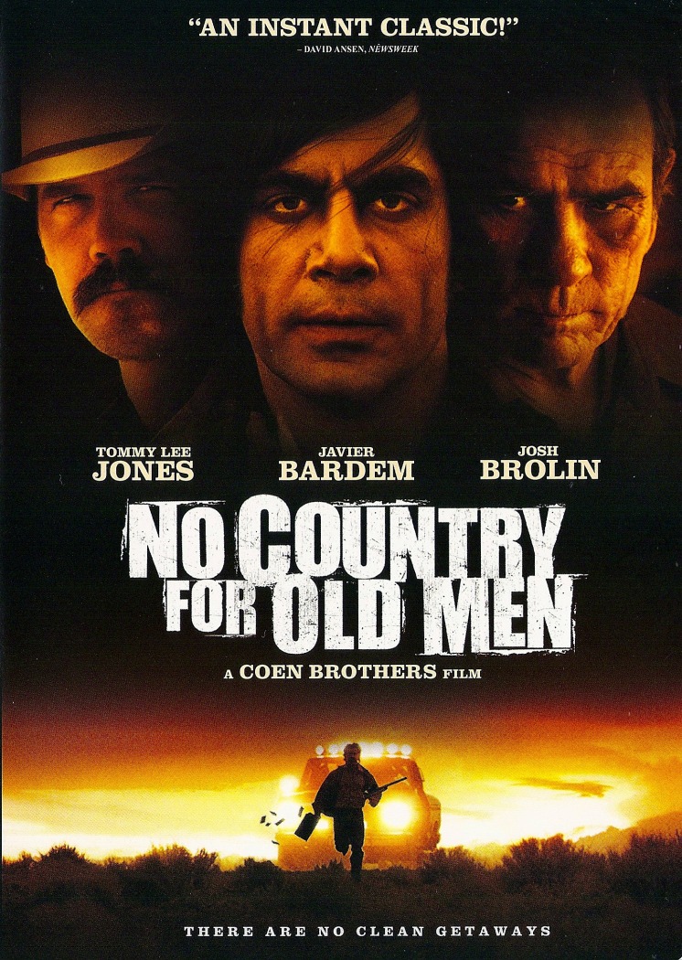 Plot: 1980, West Texas. While out hunting down by the US-Mexico border, good ol' Texas boy Llewelyn Moss, a welder by day who lives in a trailer park in Sanderson with his wife Carla Jean, comes across what is a drug deal gone wrong. What he finds are all the players left at the scene dead or near death and a satchel filled with $2 million which he takes, despite knowing that someone will be looking for the money and is probably willing to kill for it. As such, he not only tries to protect himself in the process of trying to find out who will be after the money, but also Carla Jean by sending her away. A person hired to retrieve the money is Anton Chigurh, who indeed will kill anyone, including innocent bystanders, necessary to get to his end goal, with a high pressure air pistol his weapon of choice especially as it leaves no bullet as evidence. Chigurh, in deciding who should live or die in his day to day life, also uses his own psychopathic set of principles. Chirgurh quickly learns that Moss has the money and is on the run. Also on both their trails is Terrell County Sheriff Ed Tom Bell and his naive deputy Wendell. Bell, a third generation sheriff, has of late contemplated his professional future solely because of the notion that he and his like have not been able to do anything to control the increasing violence of the region. Bell finds evidence that Moss has the money and that someone, who has left a trail of carnage behind him, is after Moss and the money. As such, Bell tries to find Moss solely to protect him from whoever is after him. One other person added to the mix is Carson Wells, hired by the same person that hired Chigurh also to retrieve the money, as their employer feels that Chigurh has gotten out of control. Wells knows Chigurh well and knows that he will not take too kindly to anyone else brought in on his job.