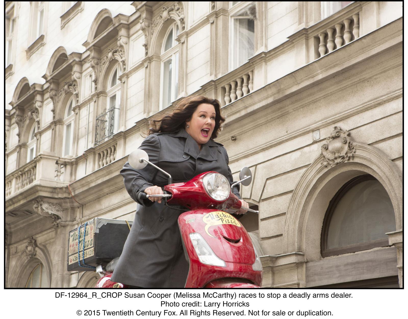 Plot: Susan Cooper is a 40-year-old, single, desk-bound CIA employee who remotely assists her partner, field agent Bradley Fine, on a mission. Fine accidentally kills arms dealer Tihomir Boyanov as he sneezes during a confrontation before extracting the location of a suitcase nuke from him. Susan uncovers evidence that Rayna, Boyanov's daughter, has contacted Sergio De Luca, a suspected broker with ties to various terrorist groups, so Fine infiltrates her home. However, Rayna shoots Fine dead, while Susan watches helplessly online, then reveals that she knows the identities of the agency's top agents, including Rick Ford and Karen Walker. Susan, who is almost certainly unknown to Rayna, volunteers to track her (she was a top trainee agent, albeit over ten years ago). When her boss, Elaine Crocker, reluctantly agrees, the ultra macho Ford quits in disgust. With her best friend Nancy providing intelligence, Susan goes to Paris undercover. That night, Ford shows up and tells Susan she will fail because of her inexperience. The next morning, Susan discovers that De Luca's office has burned down. She finds a photo of a man standing next to the fire. Ford appears, argues with Susan again and leaves. Susan sees the man in the photo follow him and switch his backpack with another one containing a bomb while Ford is distracted. Susan warns Ford in time during a Verka Serduchka concert and then pursues the man into an abandoned building. During the ensuing fight, he falls to his death. When she checks the man's video camera, Susan learns that De Luca is going to Rome.