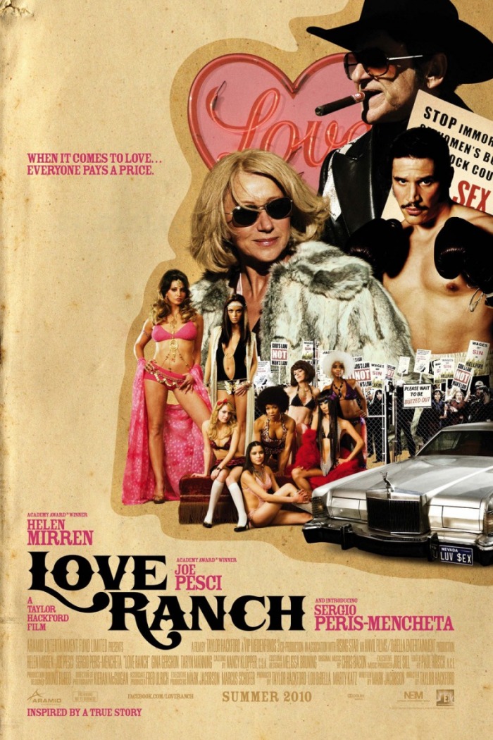 Plot: In the mid 1970s, near Reno, Nevada, Grace Bontempo (Dame Helen Mirren) runs the Love Ranch, a legal brothel. Her husband Charlie (Joe Pesci), with big dreams, a felony record, and an aptitude for spending and infidelity, is the brothel's public face. On the day Grace's doctor tells her she has cancer in an advanced state, Charlie takes on new client, Argentine boxer Armando Bruza (Sergio Peris-Mencheta), Charlie's ticket to fame: he hopes to promote a fight with Ali. Because of Charlie's felonies, Grace is Bruza's titular manager. With the I.R.S. and the church ladies circling the business, Grace takes the manager's role seriously and, along the way, Bruza charms her. Secrets play out: is there love at the Love Ranch? How will Charlie respond?