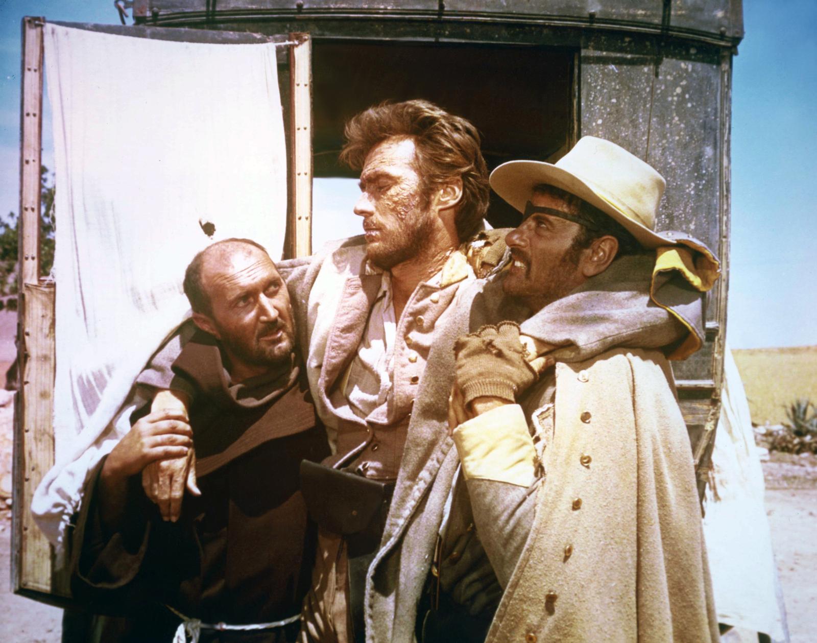 Plot: Blondie (The Good) (Clint Eastwood) is a professional gunslinger who is out trying to earn a few dollars. Angel Eyes (The Bad) (Lee Van Cleef) is a hitman who always commits to a task and sees it through, as long as he is paid to do so. And Tuco (The Ugly) (Eli Wallach) is a wanted outlaw trying to take care of his own hide. Tuco and Blondie share a partnership together making money off of Tuco's bounty, but when Blondie unties the partnership, Tuco tries to hunt down Blondie. When Blondie and Tuco come across a horse carriage loaded with dead bodies, they soon learn from the only survivor, Bill Carson (Antonio Casale), that he and a few other men have buried a stash of gold in a cemetery. Unfortunately, Carson dies and Tuco only finds out the name of the cemetery, while Blondie finds out the name on the grave. Now the two must keep each other alive in order to find the gold. Angel Eyes (who had been looking for Bill Carson) discovers that Tuco and Blondie met with Carson and knows they know the location of the gold. All he needs is for the two to lead him to it. Now The Good, the Bad and the Ugly must all battle it out to get their hands on two hundred thousand dollars worth of gold.