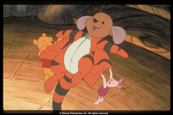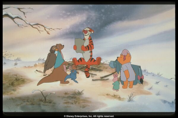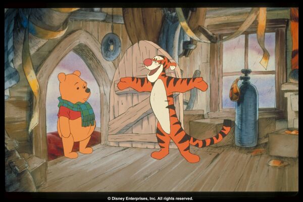 Alternative Plot: Winnie the Pooh, Piglet, Owl, Kanga, Roo, and Rabbit are preparing a suitable winter home for Eeyore, the perennially dejected donkey, but Tigger's continual bouncing interrupts their efforts. Rabbit suggests that Tigger go find others of his kind to bounce with, but Tigger thinks "the most wonderful thing about tiggers is" he's "the only one!" Just in case though, the joyously jouncy feline sets out to see if he can find relatives.