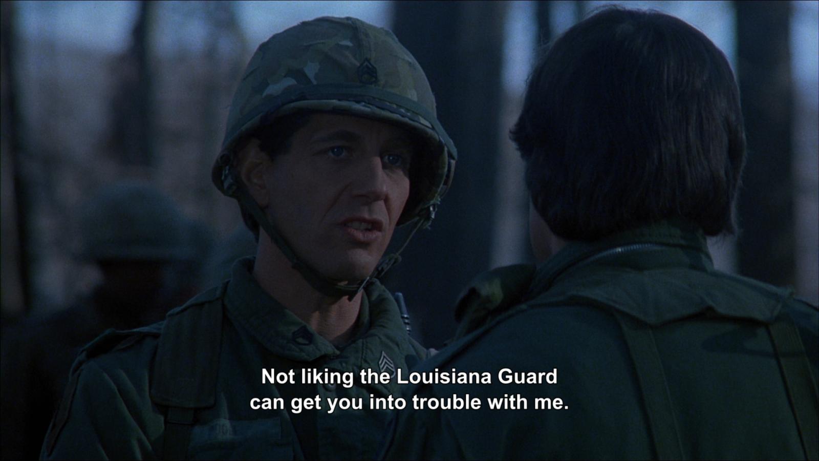 Plot: A squad of National Guards on an isolated weekend exercise in the Louisiana swamp must fight for their lives when they anger local Cajuns by stealing their canoes. Without live ammunition and in a strange country, their experience begins to mirror the Vietnam experience.