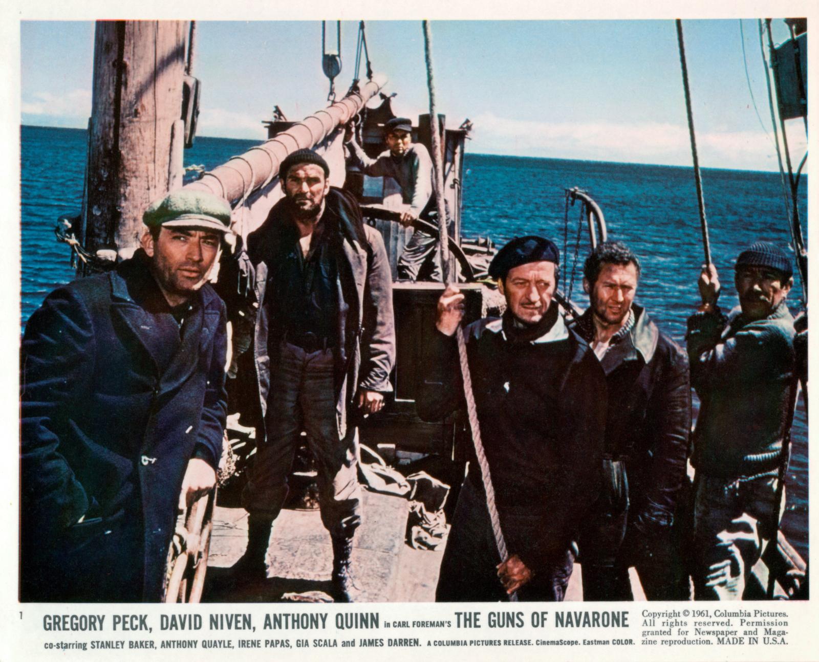 Plot: 1943. With the battle of Stalingrad turning the war against them, the Germans are attempting to bully neutral Turkey into joining the Axis. To this end, they have trapped two thousand British soldiers on Kiros, an island in the Aegean, with only one sea route for evacuation, a sea route commanded by two gigantic German antiship batteries deployed in a massive cliffside bunker on the island of Navarone. Immune to air attack and too much for Allied battleships to suppress, the British muster Keith Mallory, a commando officer who has been working on occupied Crete for nearly two years and who is an expert mountaineer, to ferry a team of British commandos to the only area of Navarone that is not monitored by the Germans, a four hundred-foot cliff. Greek resistance is to meet the team inland and guide them around German patrols to the area of the German guns. However, the commanding officer of the British team suffers grave injury in the climb and Mallory must take control of the mission, despite clashes with explosives expert John Anthony Miller, who upon the arrival of the night of the raid finds his equipment has been sabotaged, thus exposing a traitor in the team's ranks.