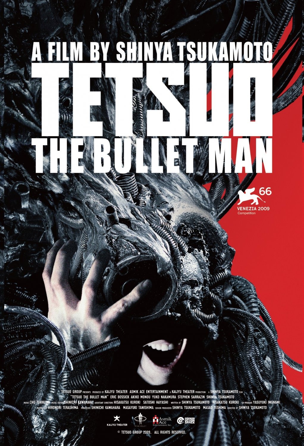 Plot: Two long decades after the archetype flesh/metal mutation in Tetsuo (1989), and seventeen years after Taniguchi Tomoo's equally majestic transformation in Tetsuo II: Body Hammer (1992), another fine specimen--the American-Japanese white collar worker, Anthony--embraces the catalytic power of pain and rage, when a mysterious driver runs over and kills his only son, Tom. Unable to come to terms with his loss, the pained father allows a magnificent bio-mechanic transmutation elevate his malleable flesh to a higher form of existence, as cold metal protrusions and sophisticated weaponry enhance his body. Now, Machine-Anthony is invulnerable. Who can confront the all-powerful Bullet Man?