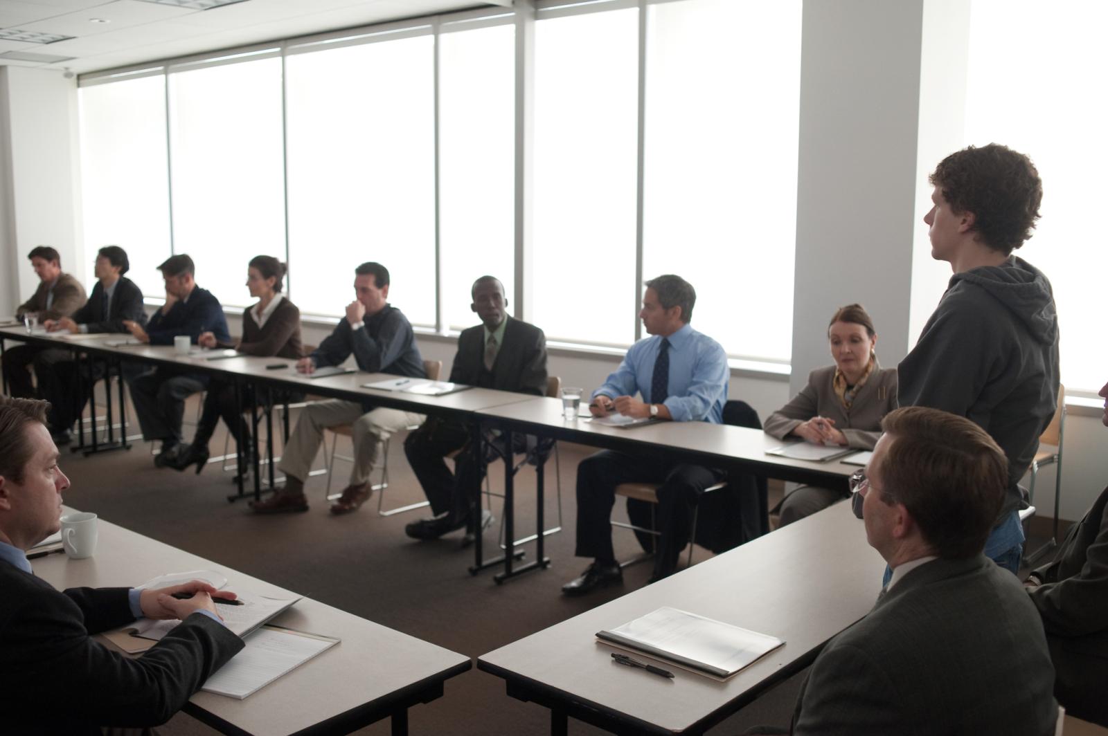 Plot: As told through flashbacks via deposition hearings for two concurrent lawsuits, the development and early days of the social networking website Facebook is presented. Harvard students and Eduardo Saverin - officially listed as the co-founders of the website - were once best friends. Based on an on-line blog about his ex-girlfriend and a site he developed allowing its users to rate the hotness factor of girls on campus, Zuckerberg, who exhibited a streak of arrogance, was asked by fellow Harvardites, wealthy twins and , and their friend Divya Narendra, to enter into an agreement to develop a social networking website specifically for Harvard students, the attraction for people to visit it being its exclusivity solely to Harvard students. Zuckerberg agreed. Zuckerberg, with financing from his friend Saverin, decided instead to develop his own website without telling the "Winklevi" (as he calls the twins) and Narenda. Zuckerberg's assertion was that he never used a line of code provided by the three in his work. As "thefacebook" as it was then called began to blossom, the twins and Narenda had to figure out what to do to regain what they believed their intellectual property without having to sue, since that's not what gentlemanly Harvardites do. As the site was brought to more and more university campuses, Zuckerberg and Saverin began to have a difference of opinion: Saverin wanted to sell ad space to generate revenue (as he had been the website's sole financier and he had profit mentality based on being an economics major), while Zuckerberg, never one interested in money, didn't want to go that route as the ads would make the site lose its "cool" factor, which made it popular. The site attracted the attention of the founder of Napster, Sean Parker, whose own dot com life had its spectacular ups and spectacular downs. As Parker ingratiated himself into Facebook's life (much to Saverin's chagrin) and as Zuckerberg began increasingly to side with Parker, Saverin slowly began to be phased out of both Zuckerberg's personal and professional life