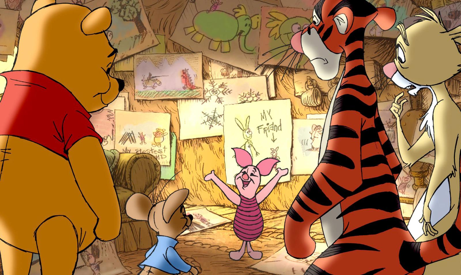 Plot: When the gang from the Hundred Acre Wood begin a honey harvest, young Piglet is excluded and told that he is too small to help. Feeling inferior, Piglet disappears and his pals Eeyore, Rabbit, Tigger, Roo, and Winnie the Pooh must use Piglet's scrapbook as a map to find him. In the process they discover that this very small animal has been a big hero in a lot of ways.