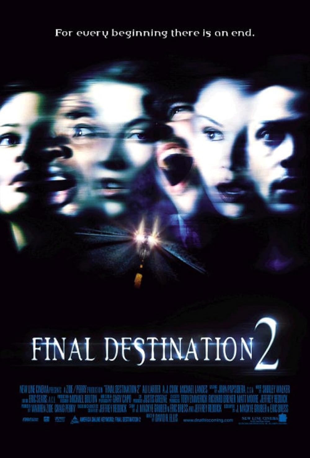 Plot: Locked away by her own choice in the perceived safety of a psychiatric hospital, the lone survivor from Final Destination lives in constant terror that Death is coming to claim her. She may be considered crazy, but she's not wrong. Death is moving toward suburban Route 23, heading south in Final Destination 2. Meanwhile, en route to a weekend getaway with her friends, Kimberly Corman () has a terrible premonition - Shocked into action, Kimberly blocks traffic on a highway on-ramp. Drivers honk and complain--until Death tears up the highway in a massive pile-up, with those left on the on-ramp narrowly escaping with their lives. But Kimberly knows it's not over: Death won't be cheated so easily. Now this random group of strangers, who were all meant to die in the freeway disaster, must join Kimberly in a desperate attempt to stay alive